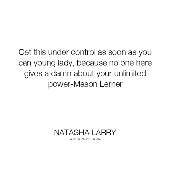 Get this under control as soon as you can young lady, because no one here gives a damn about your unlimited power-Mason Lerner