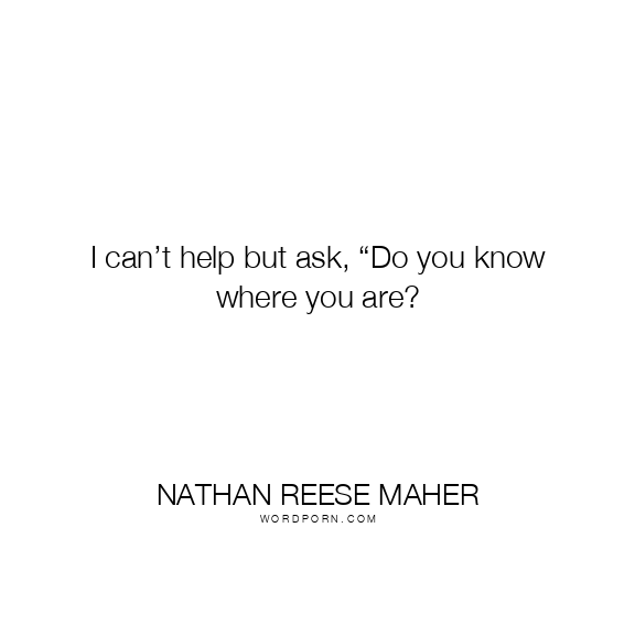 I can’t help but ask, “Do you know where you are?