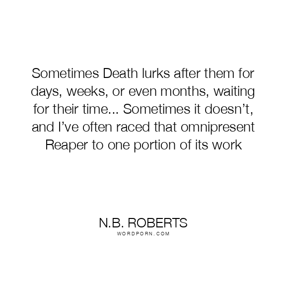 Sometimes Death lurks after them for days, weeks, or even months, waiting for their time... Sometimes it doesn’t, and I’ve often raced that omnipresent Reaper to one portion of its work