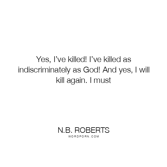 Yes, I’ve killed! I’ve killed as indiscriminately as God! And yes, I will kill again. I must