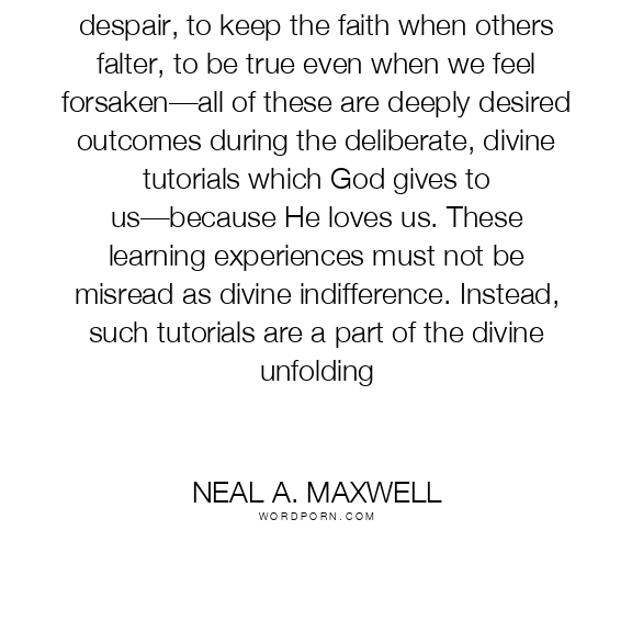 To be cheerful when others are in despair, to keep the faith when others falter, to be true even when we feel forsaken—all of these are deeply desired outcomes during the deliberate, divine tutorials which God gives to us—because He loves us. These learning experiences must not be misread as divine indifference. Instead, such tutorials are a part of the divine unfolding