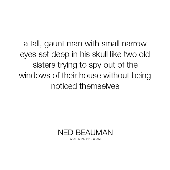 a tall, gaunt man with small narrow eyes set deep in his skull like two old sisters trying to spy out of the windows of their house without being noticed themselves