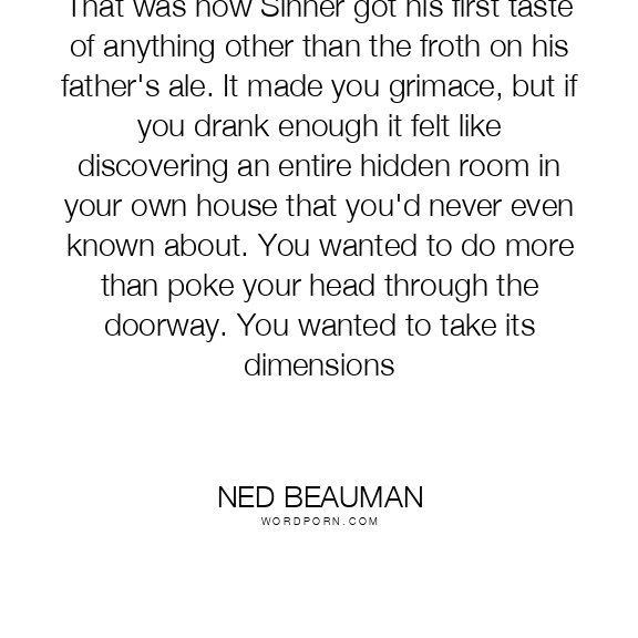 That was how Sinner got his first taste of anything other than the froth on his father's ale. It made you grimace, but if you drank enough it felt like discovering an entire hidden room in your own house that you'd never even known about. You wanted to do more than poke your head through the doorway. You wanted to take its dimensions