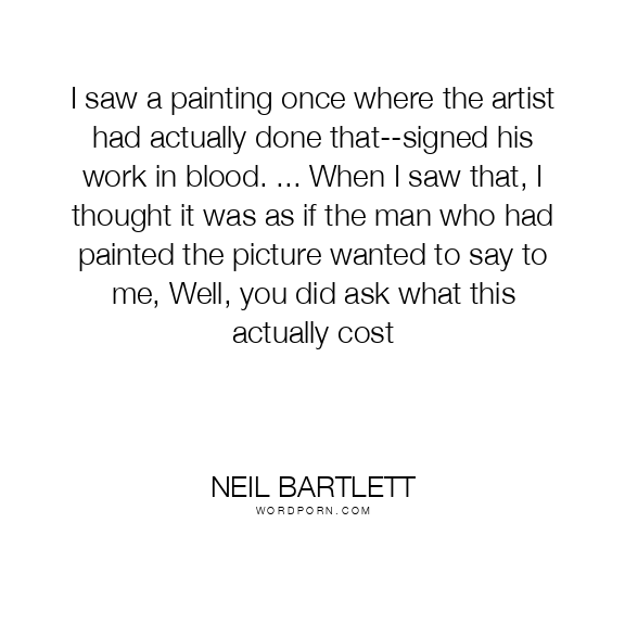 I saw a painting once where the artist had actually done that--signed his work in blood. ... When I saw that, I thought it was as if the man who had painted the picture wanted to say to me, Well, you did ask what this actually cost