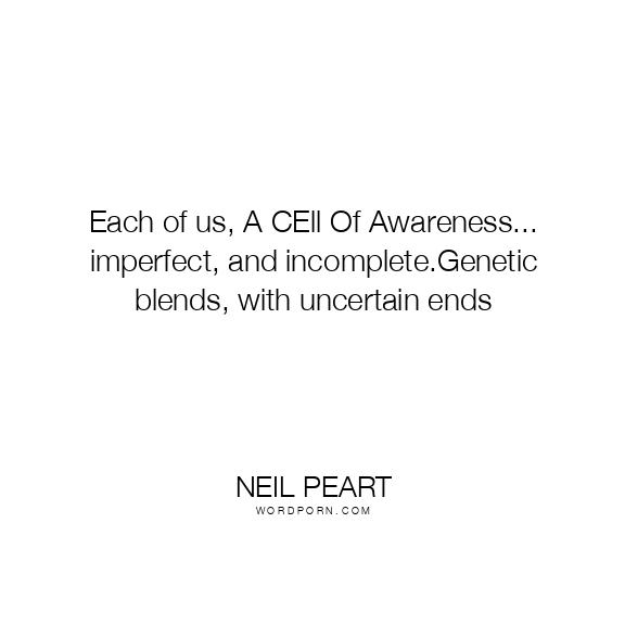 Neil Peart quote. Each of us, A CEll Of Awareness... imperfect, and incomplete.Genetic blends, with uncertain ends