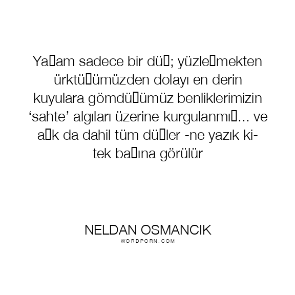 Yaşam sadece bir düş; yüzleşmekten ürktüğümüzden dolayı en derin kuyulara gömdüğümüz benliklerimizin ‘sahte’ algıları üzerine kurgulanmış... ve aşk da dahil tüm düşler -ne yazık ki- tek başına görülür
