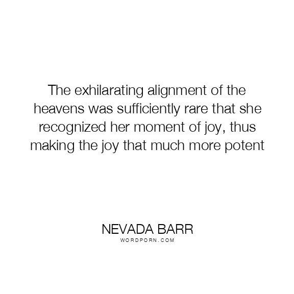 The exhilarating alignment of the heavens was sufficiently rare that she recognized her moment of joy, thus making the joy that much more potent