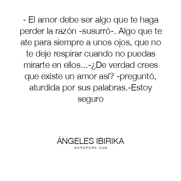 - El amor debe ser algo que te haga perder la razón -susurró-. Algo que te ate para siempre a unos ojos, que no te deje respirar cuando no puedas mirarte en ellos...-¿De verdad crees que existe un amor así? -preguntó, aturdida por sus palabras.-Estoy seguro