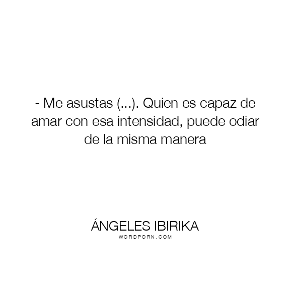 - Me asustas (...). Quien es capaz de amar con esa intensidad, puede odiar de la misma manera