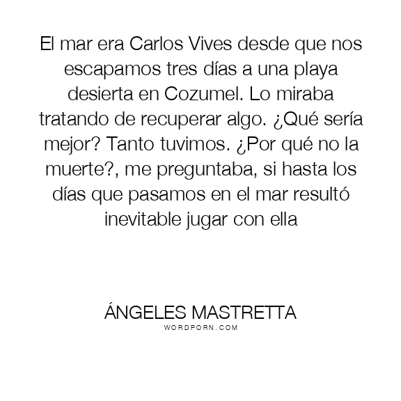 El mar era Carlos Vives desde que nos escapamos tres días a una playa desierta en Cozumel. Lo miraba tratando de recuperar algo. ¿Qué sería mejor? Tanto tuvimos. ¿Por qué no la muerte?, me preguntaba, si hasta los días que pasamos en el mar resultó inevitable jugar con ella