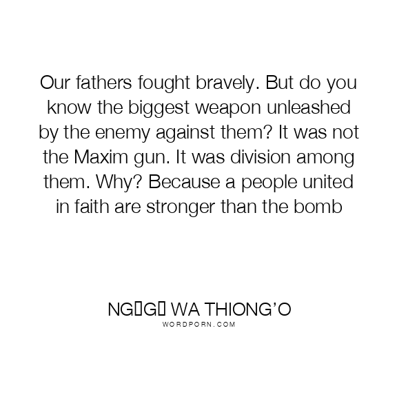 Our fathers fought bravely. But do you know the biggest weapon unleashed by the enemy against them? It was not the Maxim gun. It was division among them. Why? Because a people united in faith are stronger than the bomb