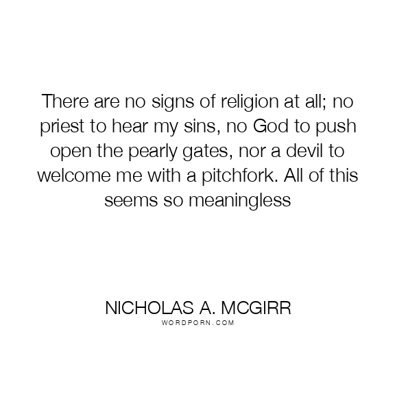 There are no signs of religion at all; no priest to hear my sins, no God to push open the pearly gates, nor a devil to welcome me with a pitchfork. All of this seems so meaningless