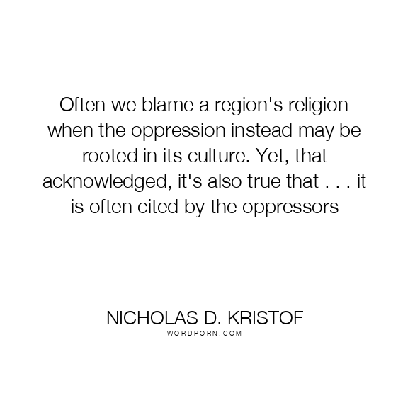 Often we blame a region's religion when the oppression instead may be rooted in its culture. Yet, that acknowledged, it's also true that . . . it is often cited by the oppressors