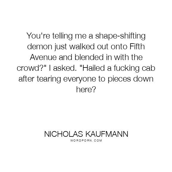 You're telling me a shape-shifting demon just walked out onto Fifth Avenue and blended in with the crowd?" I asked. "Hailed a fucking cab after tearing everyone to pieces down here?