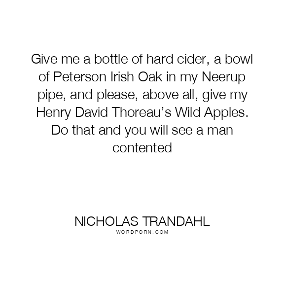 Give me a bottle of hard cider, a bowl of Peterson Irish Oak in my Neerup pipe, and please, above all, give my Henry David Thoreau’s Wild Apples. Do that and you will see a man contented