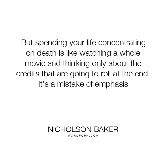 But spending your life concentrating on death is like watching a whole movie and thinking only about the credits that are going to roll at the end. It’s a mistake of emphasis