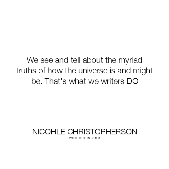 Copy Image We see and tell about the myriad truths of how the universe is and might be. That's what we writers DO Moms Typewriter A A SAVE THIS IMAGE