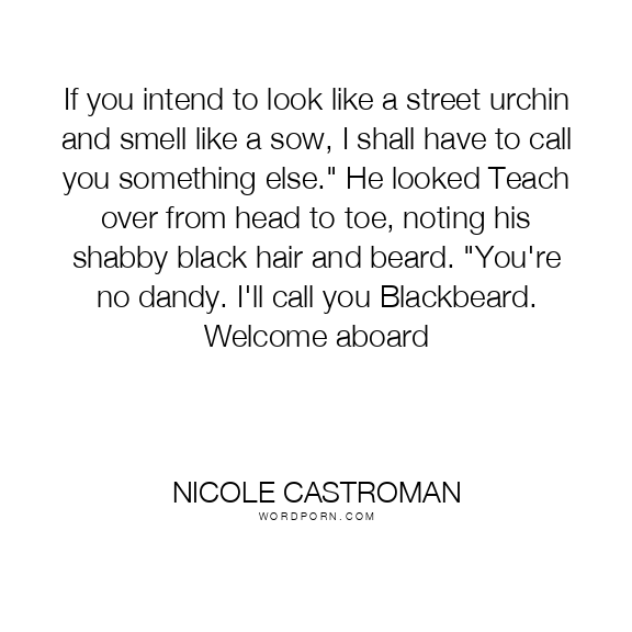 If you intend to look like a street urchin and smell like a sow, I shall have to call you something else." He looked Teach over from head to toe, noting his shabby black hair and beard. "You're no dandy. I'll call you Blackbeard. Welcome aboard