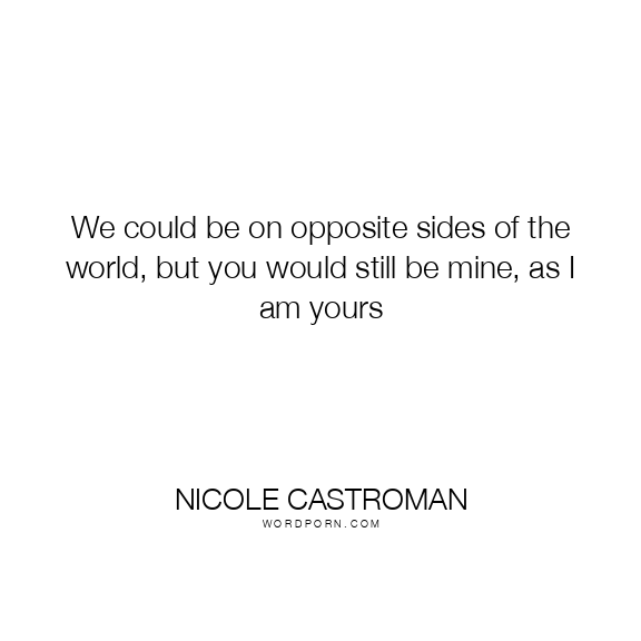 We could be on opposite sides of the world, but you would still be mine, as I am yours