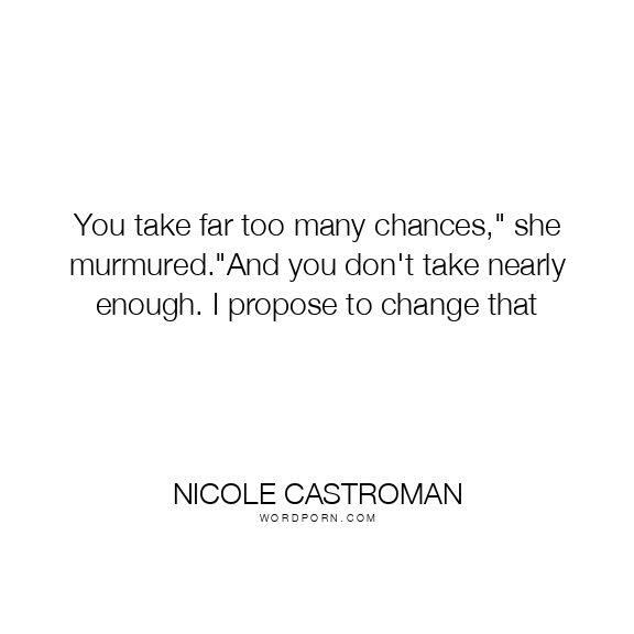 You take far too many chances," she murmured."And you don't take nearly enough. I propose to change that