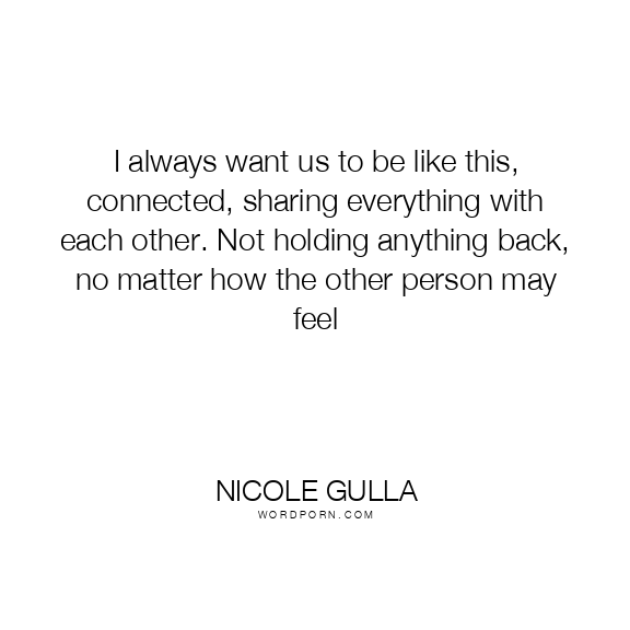 I always want us to be like this, connected, sharing everything with each other. Not holding anything back, no matter how the other person may feel