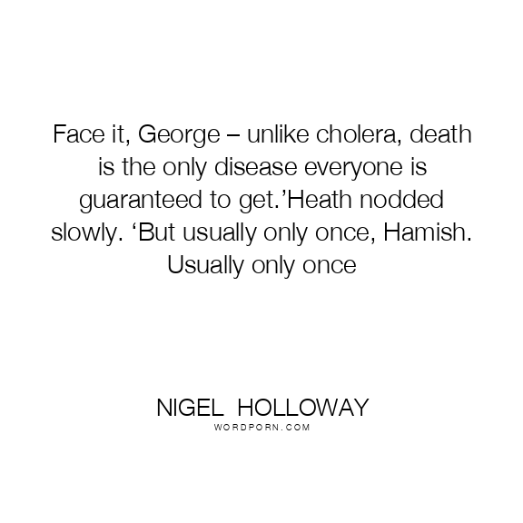 Face it, George – unlike cholera, death is the only disease everyone is guaranteed to get.’Heath nodded slowly. ‘But usually only once, Hamish. Usually only once
