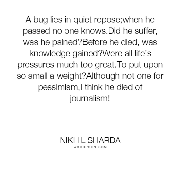 A bug lies in quiet repose;when he passed no one knows.Did he suffer, was he pained?Before he died, was knowledge gained?Were all life’s pressures much too great.To put upon so small a weight?Although not one for pessimism,I think he died of journalism!