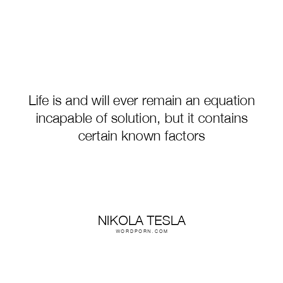 Life is and will ever remain an equation incapable of solution, but it contains certain known factors