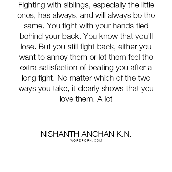 Fighting with siblings, especially the little ones, has always, and will always be the same. You fight with your hands tied behind your back. You know that you'll lose. But you still fight back, either you want to annoy them or let them feel the extra satisfaction of beating you after a long fight. No matter which of the two ways you take, it clearly shows that you love them. A lot