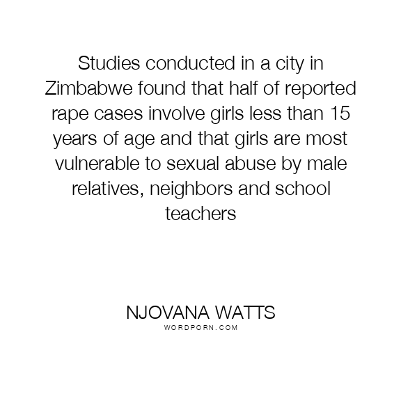 Studies conducted in a city in Zimbabwe found that half of reported rape cases involve girls less than 15 years of age and that girls are most vulnerable to sexual abuse by male relatives, neighbors and school teachers
