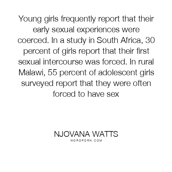 Young girls frequently report that their early sexual experiences were coerced. In a study in South Africa, 30 percent of girls report that their first sexual intercourse was forced. In rural Malawi, 55 percent of adolescent girls surveyed report that they were often forced to have sex