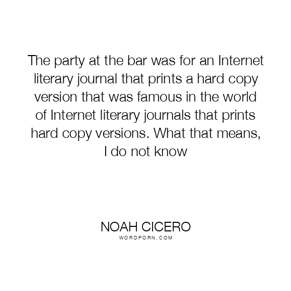 The party at the bar was for an Internet literary journal that prints a hard copy version that was famous in the world of Internet literary journals that prints hard copy versions. What that means, I do not know