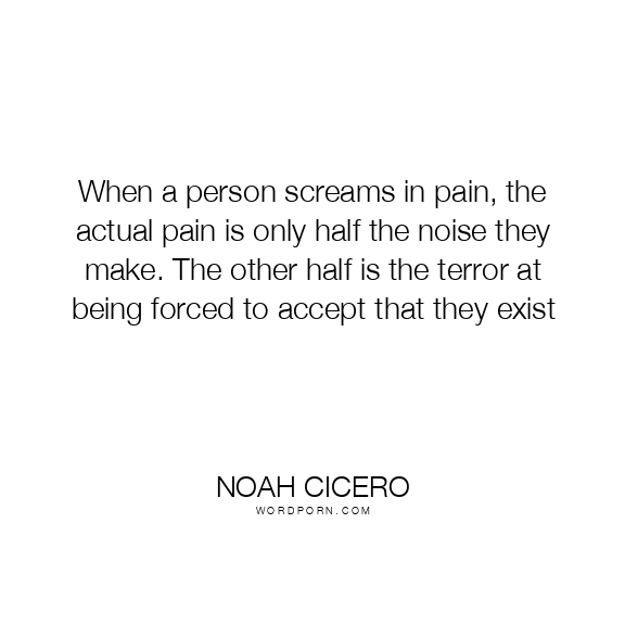 When a person screams in pain, the actual pain is only half the noise they make. The other half is the terror at being forced to accept that they exist