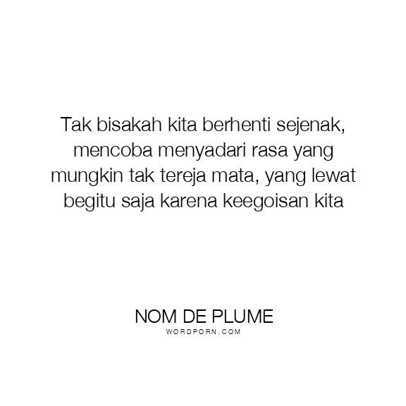 Tak bisakah kita berhenti sejenak, mencoba menyadari rasa yang mungkin tak tereja mata, yang lewat begitu saja karena keegoisan kita
