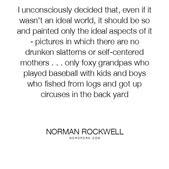 I unconsciously decided that, even if it wasn't an ideal world, it should be so and painted only the ideal aspects of it - pictures in which there are no drunken slatterns or self-centered mothers . . . only foxy grandpas who played baseball with kids and boys who fished from logs and got up circuses in the back yard