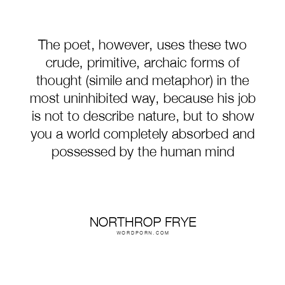 The poet, however, uses these two crude, primitive, archaic forms of thought (simile and metaphor) in the most uninhibited way, because his job is not to describe nature, but to show you a world completely absorbed and possessed by the human mind