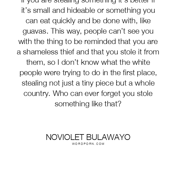 If you are stealing something it’s better if it’s small and hideable or something you can eat quickly and be done with, like guavas. This way, people can’t see you with the thing to be reminded that you are a shameless thief and that you stole it from them, so I don’t know what the white people were trying to do in the first place, stealing not just a tiny piece but a whole country. Who can ever forget you stole something like that?