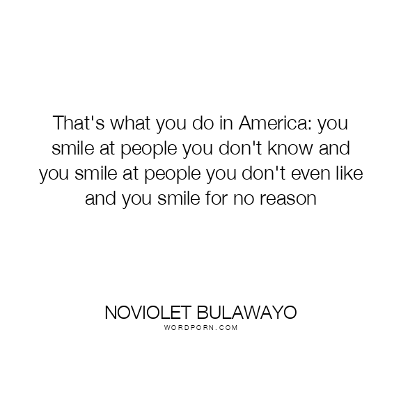 That's what you do in America: you smile at people you don't know and you smile at people you don't even like and you smile for no reason