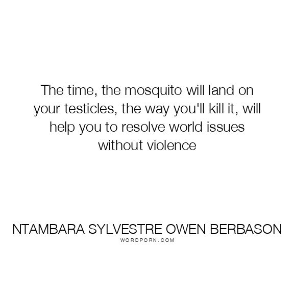 The time, the mosquito will land on your testicles, the way you'll kill it, will help you to resolve world issues without violence