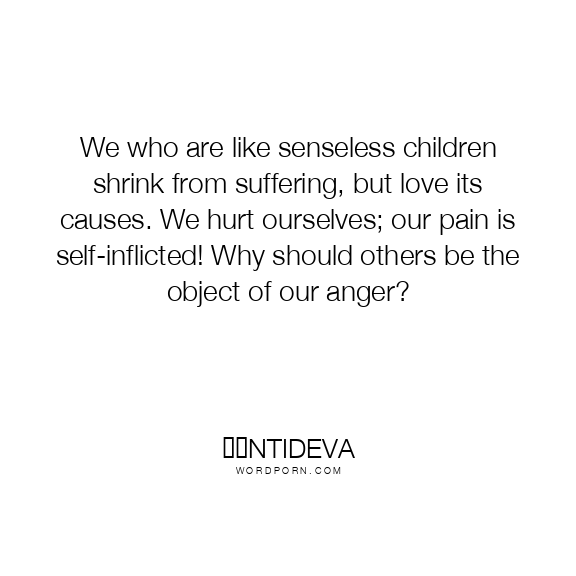 We who are like senseless children shrink from suffering, but love its causes. We hurt ourselves; our pain is self-inflicted! Why should others be the object of our anger?