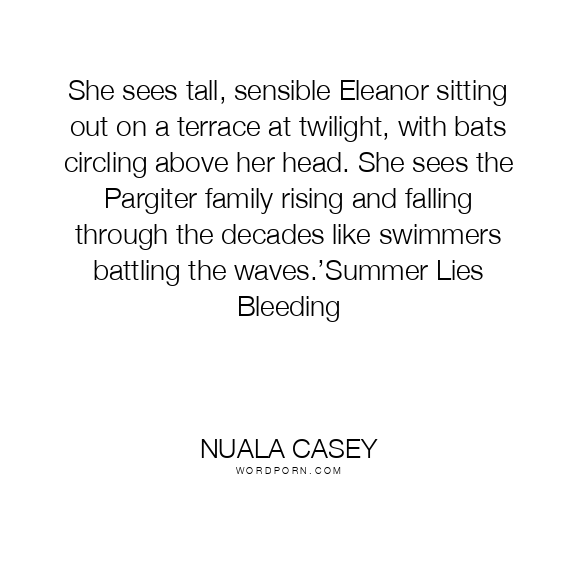 She sees tall, sensible Eleanor sitting out on a terrace at twilight, with bats circling above her head. She sees the Pargiter family rising and falling through the decades like swimmers battling the waves.’Summer Lies Bleeding