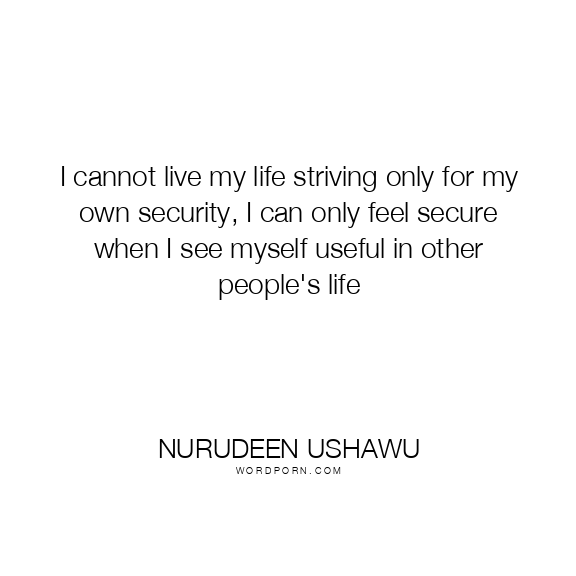 I cannot live my life striving only for my own security, I can only feel secure when I see myself useful in other people's life