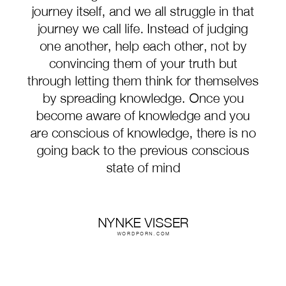 Becoming conscious and aware is a journey itself, and we all struggle in that journey we call life. Instead of judging one another, help each other, not by convincing them of your truth but through letting them think for themselves by spreading knowledge. Once you become aware of knowledge and you are conscious of knowledge, there is no going back to the previous conscious state of mind