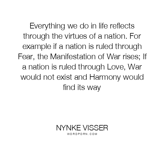 Everything we do in life reflects through the virtues of a nation. For example if a nation is ruled through Fear, the Manifestation of War rises; If a nation is ruled through Love, War would not exist and Harmony would find its way