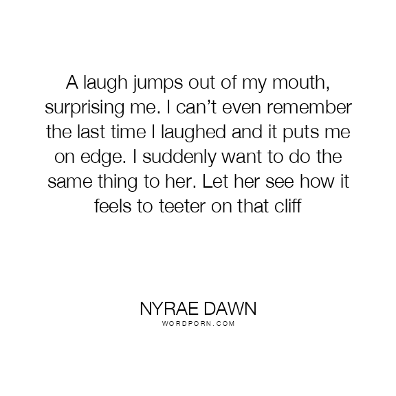 A laugh jumps out of my mouth, surprising me. I can’t even remember the last time I laughed and it puts me on edge. I suddenly want to do the same thing to her. Let her see how it feels to teeter on that cliff