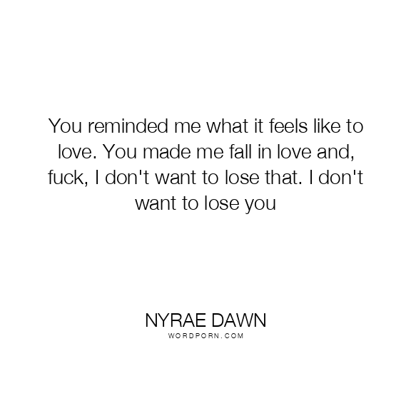 You reminded me what it feels like to love. You made me fall in love and, fuck, I don't want to lose that. I don't want to lose you