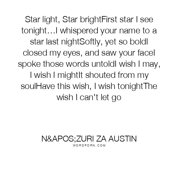 Star light, Star brightFirst star I see tonight…I whispered your name to a star last nightSoftly, yet so boldI closed my eyes, and saw your faceI spoke those words untoldI wish I may, I wish I mightIt shouted from my soulHave this wish, I wish tonightThe wish I can't let go