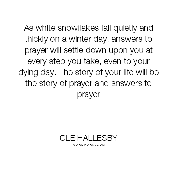 As white snowflakes fall quietly and thickly on a winter day, answers to prayer will settle down upon you at every step you take, even to your dying day. The story of your life will be the story of prayer and answers to prayer