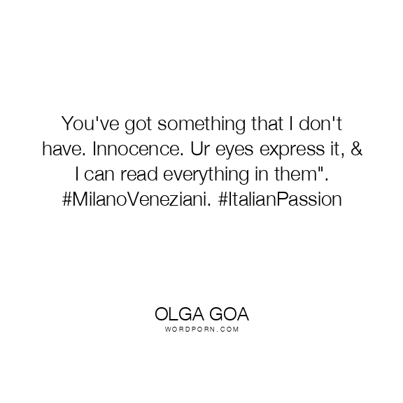 Olga GOA quote. You've got something that I don't have. Innocence. Ur eyes express it, & I can read everything in them