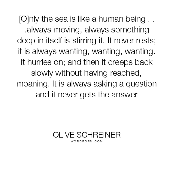 [O]nly the sea is like a human being . . .always moving, always something deep in itself is stirring it. It never rests; it is always wanting, wanting, wanting. It hurries on; and then it creeps back slowly without having reached, moaning. It is always asking a question and it never gets the answer
